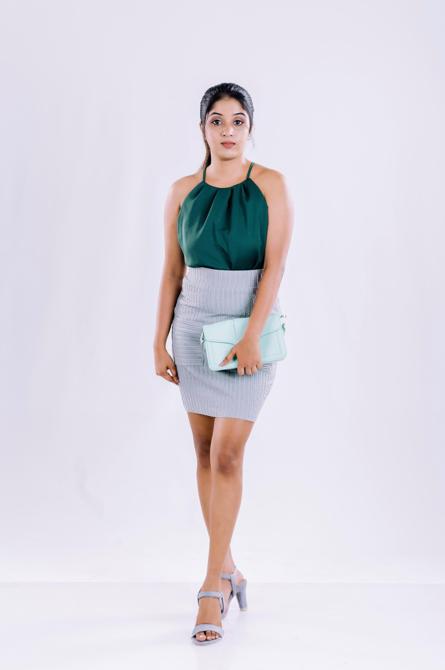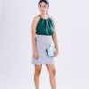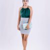 * Neckline: Pleated halter neck
