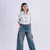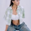 Add a trendy and edgy layer to your outfit with The Urban Plaid Cropped Shirt. This unique top features a soft, textured plaid pattern in a cool mint green and white. With its cropped length and frayed raw-edge detailing along the hem and sleeves, this shirt offers a relaxed yet stylish feel. The button-down front and classic collar make it versatile enough to be worn as a standalone piece or layered over a crop top or bralette. It’s the perfect choice for an effortless, street-style look.